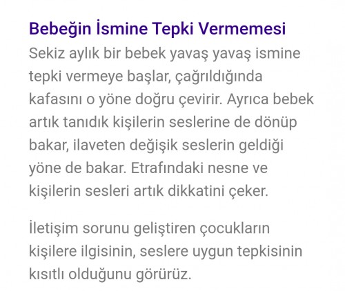 Birçok anne bebeğin ismine 6 ay gibi kısa bir süre önce tepki verdiğini not etmesine rağmen öyle olmasa da annemin sesine basitçe tepki verebilir.