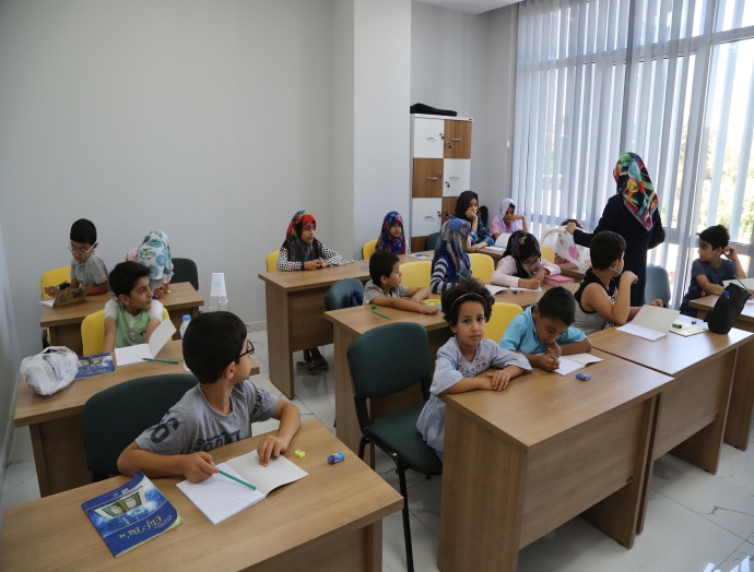 Gölcük müftülüğünden görevlendirilen aysun yazılıkaya hacer çakmak nezaretinde kursa gelen öğrenciler yaz ayında kuran ve namaz dualarını öğrendiler kuran kursunda kuranı okumayı öğrenen 40 öğrenciye hayır sever vatandaşlar tarafından kuranı kerim hediye edildi. Kuran kursu öğrencisi rukiye çelik buraya geliyoruz kuran okuyoruz kuran ı hatmettik. Diyanet i̇şleri başkanı ve tdv mütevelli heyeti başkanı prof. Bugün son günümüz olduğu için bize hediye getirdiler.